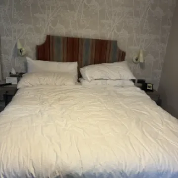 Hotel absolutamente hermoso, desayuno abundante, la cama era para morirse, no quería salir de ella, el inconveniente es el estacionamiento, un desastre total cuando el personal estacionaba allí y tenías que ir a otro lado para estacionar, lo que costaba 22 o 30 libras, dependiendo de qué estacionamiento, los autos para discapacitados ni siquiera tenían credenciales y tampoco se revisaron, aparte de esa noche fabulosa en la que recibimos latas de agua gratis y galletas gratis en recepción.