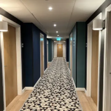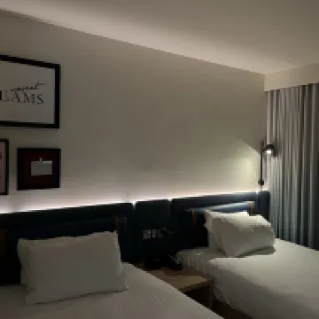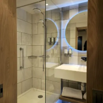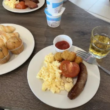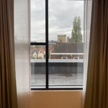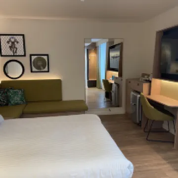 Éramos una familia de 4 adultos y 2 niños. Cada habitación tenía una cama doble y un sofá cama de buen tamaño. Las camas eran cómodas, aunque los sofás cama eran un poco firmes, pero eran para los niños, que estaban contentos con ellos. Solicitamos habitaciones cercanas y estaban una al lado de la otra, con vistas a la fachada del hotel, por lo que daban a la calle. La insonorización era buena y no se oía mucho ruido exterior. El aire acondicionado era excelente y fresco. El baño estaba bien, con una ducha amplia y artículos de aseo gratuitos. El desayuno estaba incluido y había una buena selección para elegir, todos de muy buena calidad. ¡La waflera fue una ventaja adicional! La ubicación era muy buena, a poca distancia del centro y muy cerca del Tesco Local para cualquier extra que pudieras necesitar. Compramos algunas bebidas, ya que había una nevera práctica en la habitación. Definitivamente me alojaría aquí de nuevo.