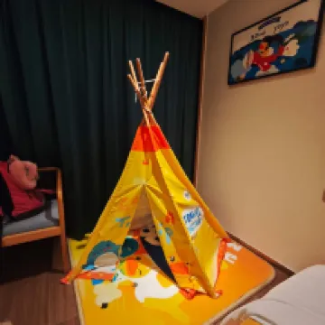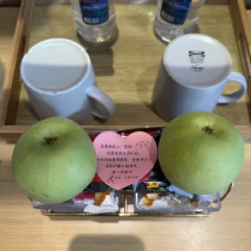 Fruta de bienvenida: Nada más entrar, nos esperaba una bandeja de fruta fresca. El servicio fue de cinco estrellas, realmente excepcional. Desde que reservamos con antelación, nos llamaron para consultarnos y nos ofrecieron un plan de viaje por adelantado, incluso nos ayudaron a reservar entradas con tarifas preferenciales, lo que nos ahorró bastante dinero. A los niños les encantó tanto que nos quedamos tres días seguidos. También nos ayudaron a imprimir documentos. En resumen, un hotel muy bueno. La ubicación es excelente, a solo 15 minutos a pie de la entrada de la Zona Panorámica de Wulingyuan (la Puerta Este de Zhangjiajie) y a pocos cientos de metros del espectáculo 'Encanto de Xiangxi'. Durante nuestra estancia, notamos que había muchos extranjeros, es muy cómodo para las familias. Se puede tender la ropa en la azotea; la dejamos un día y, al volver de nuestra excursión al día siguiente, ya estaba seca. El hotel incluso tiene una piscina, aunque el agua estaba un poco fría y los niños no se animaron a bañarse. No obstante, vimos a muchos extranjeros disfrutándola, y los más pequeños se lo pasaban bien con sus flotadores, ¡incluso uno en forma de ganso! En cada planta hay lavadoras disponibles para los huéspedes, lo cual es muy práctico, aunque hay que decir que suelen estar bastante ocupadas. En general, este hotel es ideal para familias. El único pequeño inconveniente, según los niños, es que desearíamos que el desayuno fuera un poco más variado y abundante.