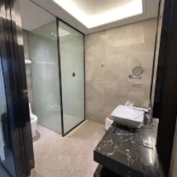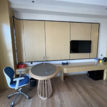 This is a thoughtful team to manage the hotel.when you first in the room,there are 2 different color cups, you will be easily to identify whose cup without guessing. bathroom Booth's floor has groove on it, it's hard to slip, hotel still provide anti slip mat.beside toilet seat,it installed a tray on the wall,it fits the phone,if you have habit to bring the phone in.room has fire sprinkler but still has a set fire extinguisher and fire emergency kits.it make me so relaxed.room has 9 feet ceiling tall , it make comfortable.. room is clean, kettle no calcium deposits,no dust underneath the couch.since WiFi only support CHINA phone number to connect,I don't have any,ask concierge to help,she makes no hesitation use her phone to help me make connection.location is perfect for travelers, restaurants surrounding,one big pro is the mall cross street has Cross border buses and tricycle vehicle taxi station, you can make a slow glance the city,river side for only 50$ for couple per hour, you will see Zhong Shan city is so beautiful and relax, distance 10 minutes charge 10$, some time, they will get short cut into the alleys, you will be surprised by the local scene.