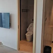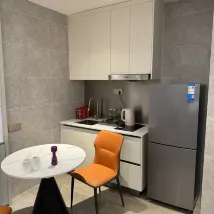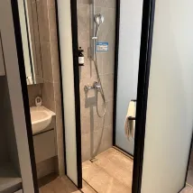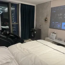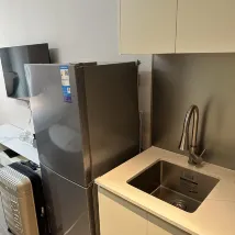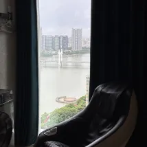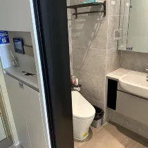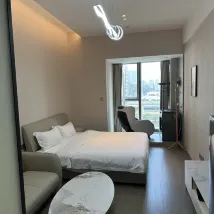 The apartment is well designed and very comfortable. The washing machine is a great addition. The beds are super comfy. The disposable towels are a bit thin but the shower was excellent. Food options available nearby, including Luckin Coffee downstairs. Very close to the port, this is a great choice if passing through Zhuhai.