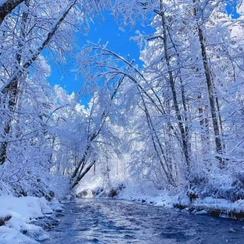 ▲ Paisaje invernal nevado del Lago del Cielo