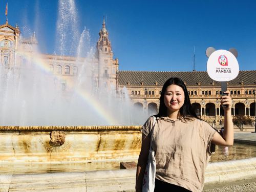 ▲ Nos reuniremos en la gran fuente de la Plaza de España, donde su guía le estará esperando con un cartel que lleva el logotipo de The Touring Pandas.