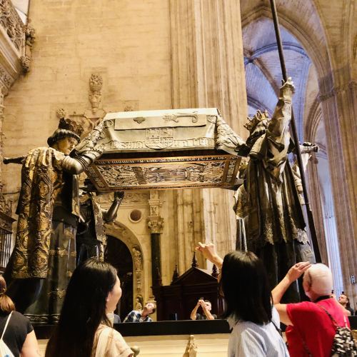 ▲ A continuación, nos dirigiremos al segundo hito del día: la catedral, donde visitaremos la impresionante tumba de Colón. Después, podrás elegir libremente si deseas subir a la emblemática Torre Giralda.