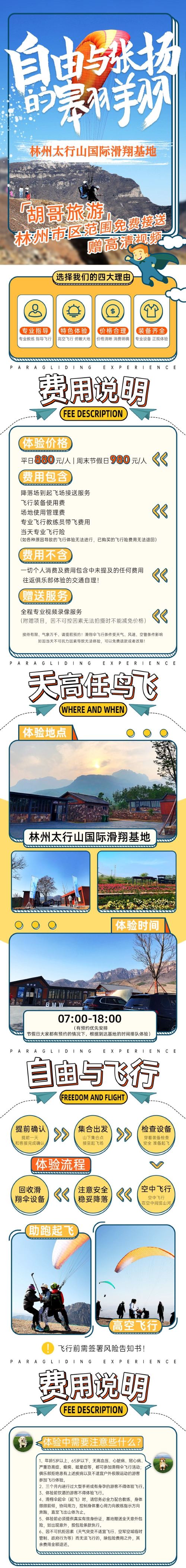1. Personas de 5 a 60 años, con un peso inferior a 90 kg, sin hipertensión, enfermedades cardíacas, cardiopatía coronaria, acrofobia grave, epilepsia o vértigo pueden participar en la actividad de parapente. El club rechaza la participación de viajeros con las condiciones mencionadas o que no sean aptos para deportes extremos al aire libre.