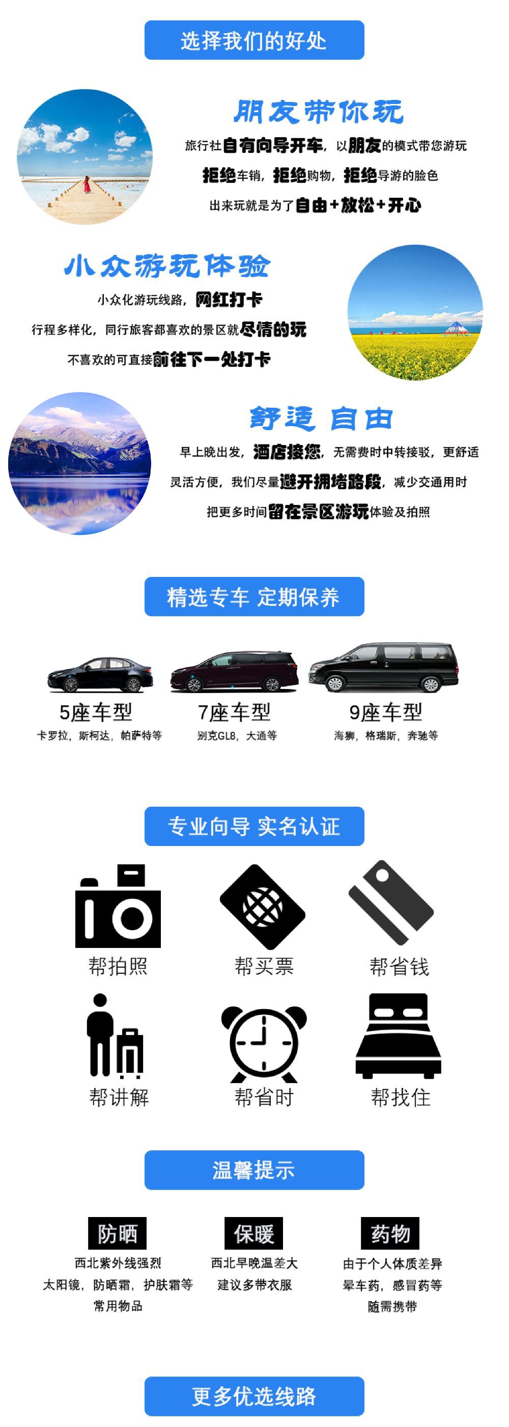 1. Expertos lideran el equipo, rutas cuidadosamente seleccionadas, experiencia en profundidad, juego innovador, mayordomos atentos, asistentes de fotografía y paradas en cualquier momento para disfrutar del hermoso paisaje a lo largo del camino.
