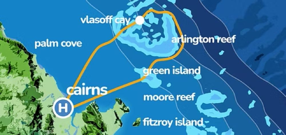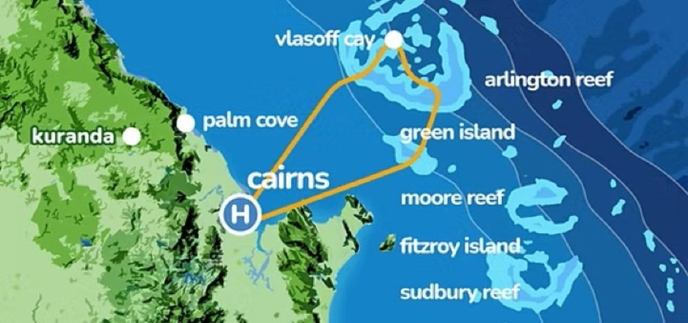 Volarás sobre la Gran Barrera de Coral, disfrutando de impresionantes vistas aéreas de la Isla Verde, los arrecifes exteriores (como Arlington Reef) y la isla de arena Vlasoff Sand Cay. Podrás observar tortugas marinas, tiburones, mantarrayas, delfines y dugongos, además de tener la oportunidad de avistar ballenas jorobadas (de julio a septiembre).