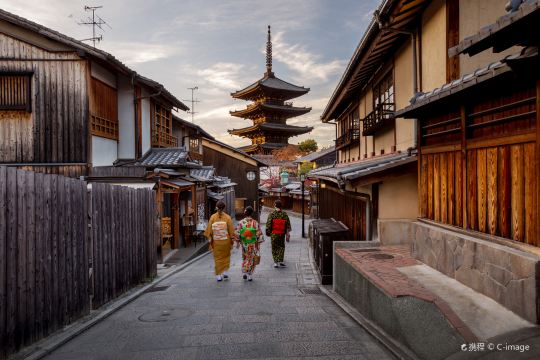 Sanneizaka (pendiente de tres años) son dos calles históricas que conducen al templo Kiyomizu-dera, rodeadas de numerosos edificios y tiendas tradicionales japonesas que venden una variedad de especialidades y artesanías de Kioto. Sanneizaka es famosa por sus empinados escalones de piedra, flanqueados por casas de madera del período Edo, mientras que la pendiente de Ninenzaka es más suave y alberga muchas casas de té y ryokan tradicionales. Estas calles no solo son un camino hacia el templo Kiyomizu-dera, sino también un lugar para experimentar la cultura tradicional de Kioto.