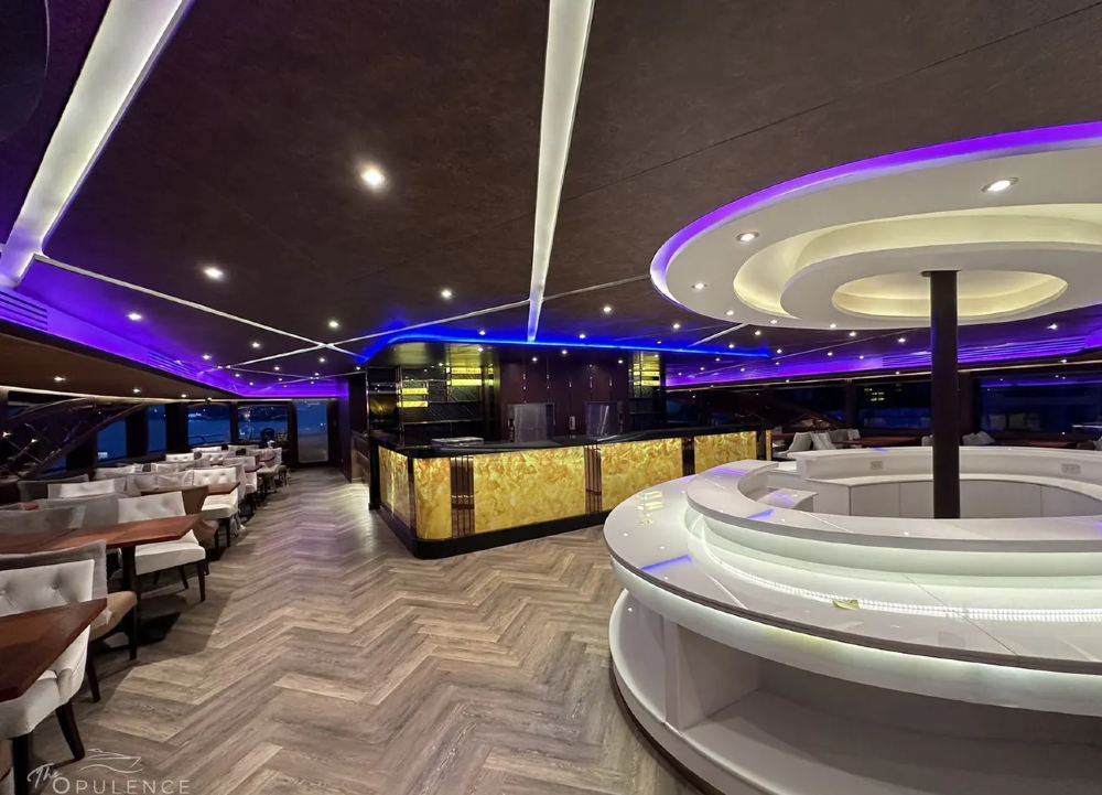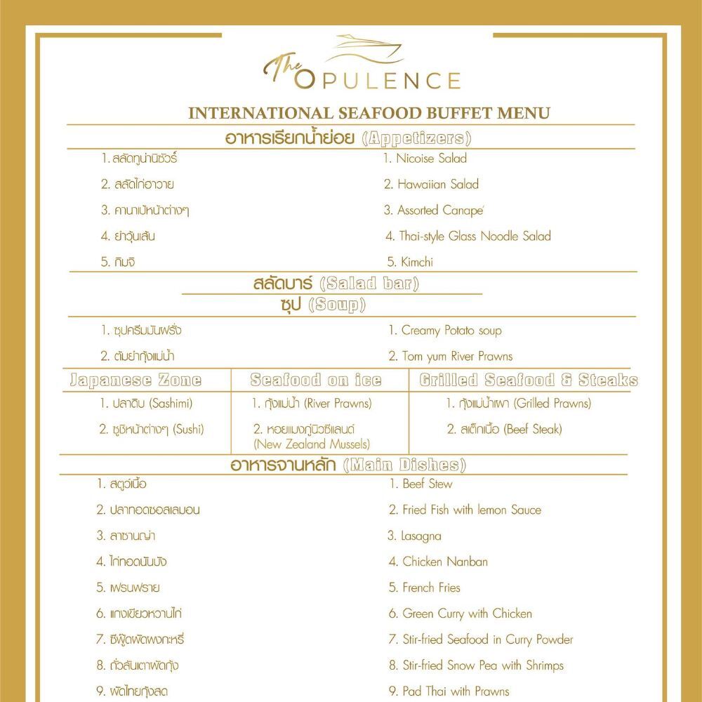 - No hay mesas en la terraza delantera de la segunda cubierta (cubierta superior), lo que permite a todos los clientes disfrutar de paseos, fotos y contemplar el río Chao Phraya. Si desean disfrutar de una vista panorámica, les rogamos que soliciten la azotea.