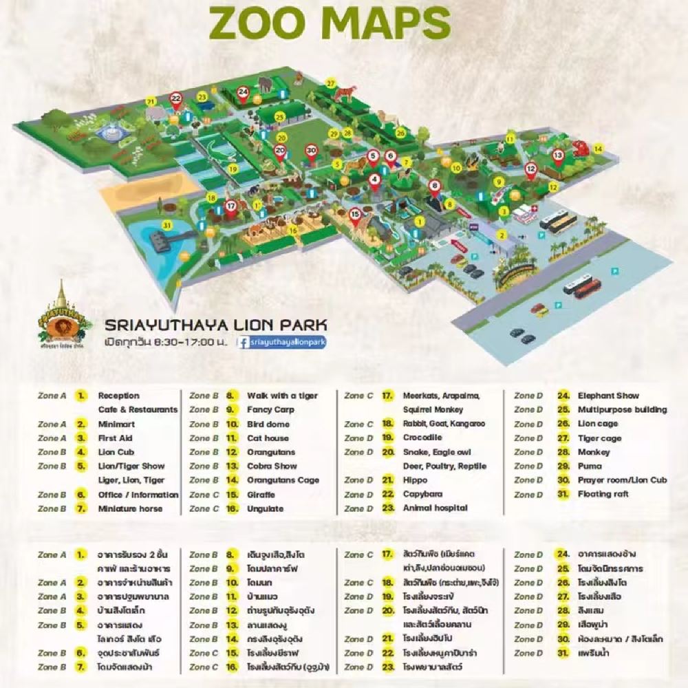 [Sriayuthaya Lion Park] es un nuevo zoológico ubicado en Ayutthaya que se inauguró a fines de 2021.