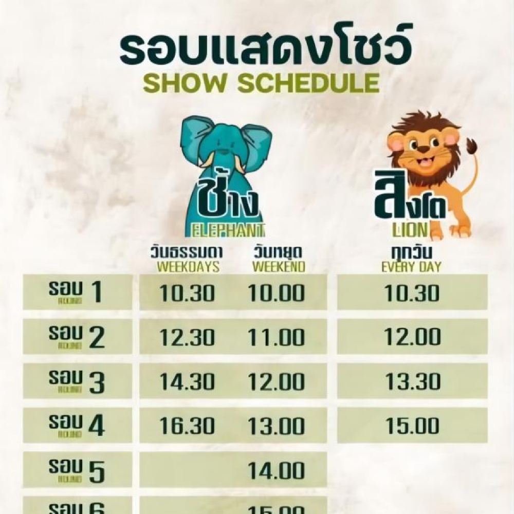 Además de las actividad mencionadas anteriormente, el Zoológico de Leones de Ayutthaya también cuenta con emocionantes actuaciones de elefantes, monos, etc., y también puedes tomar un carruaje tirado por caballos, montar un mini caballo y montar un bote cisne en el lago, lo cual es muy adecuado para que toda la familia viaje junta.