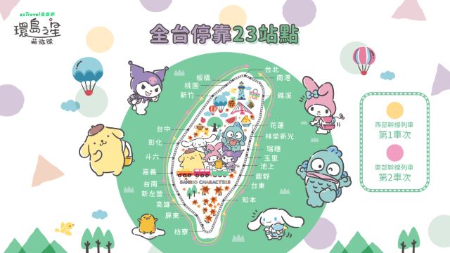El vagón de negocios está equipado con asientos VIP que pueden girar 360 grados, ofreciendo un espacio amplio y cómodo que mejora la experiencia de viaje. ¡El tren cuenta con 4 diseños temáticos diferentes de Melody, Kuromi, Pompompurin y Cinnamoroll, combinados con elementos taiwaneses que te sorprenderán en cada viaje!