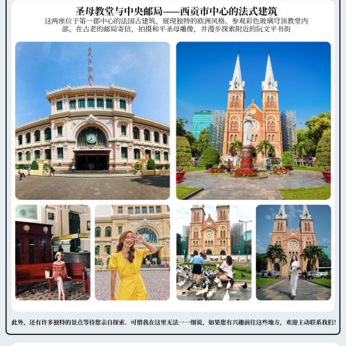 ¿Quieres profundizar en la cultura y la historia de Ciudad Ho Chi Minh, Vietnam? Este itinerario incluye un recorrido clásico por la ciudad, el "City Tour", que incluye lugares emblemáticos como el Palacio de la Reunificación, la Oficina Central de Correos, la Iglesia Roja, el Museo de los Restos de Guerra y el Mercado Ben Thanh. ¡Disfruta de un día enriquecedor explorando la ciudad!