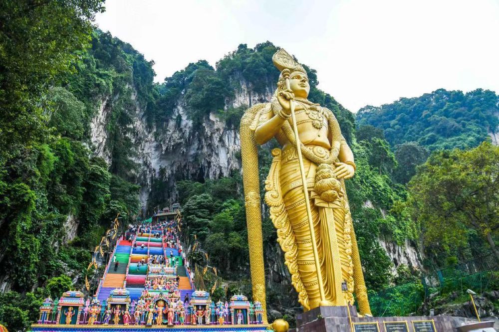 ▲ Explora las Cuevas de Batu, a las que se llega subiendo 272 escalones, y maravíllate con la impresionante estatua dorada de Lord Murugan, que alcanza los 140 pies (43 metros) de altura. Durante el ascenso, te recibirán juguetonos monos, y en el interior de las cuevas encontrarás techos altos y magníficos santuarios hindúes.