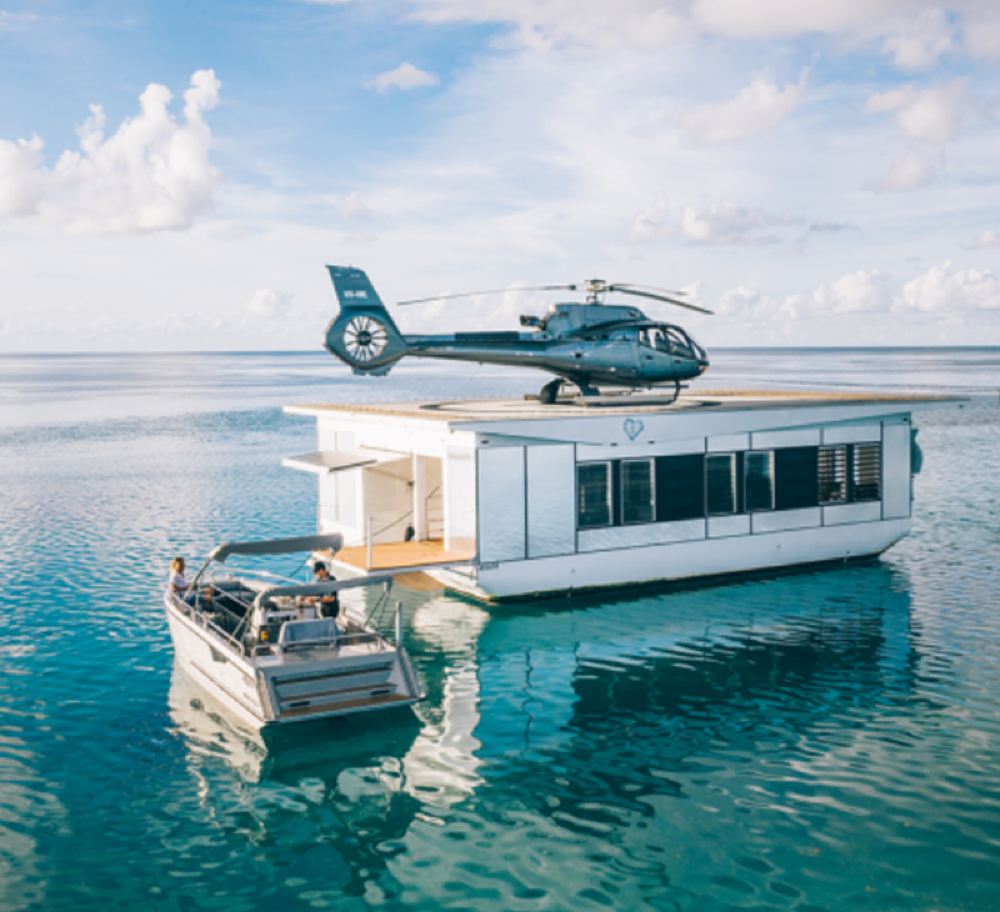 Sube a un helicóptero exclusivo y contempla desde las alturas la Gran Barrera de Coral y el mundialmente famoso Heart Reef, para luego aterrizar en nuestro muelle flotante privado anclado en la laguna del Heart Reef, la Isla Corazón.