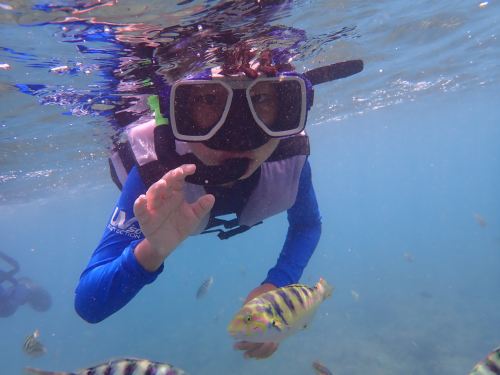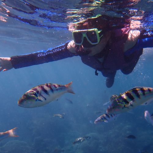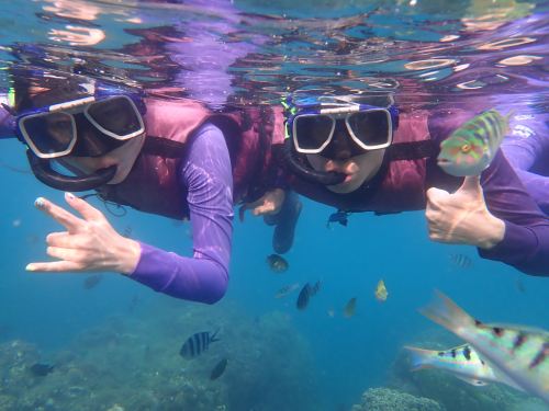 Aguas cristalinas te esperan para tu primera experiencia de snorkel en Houbihu.