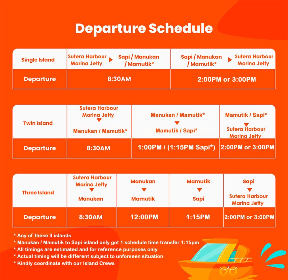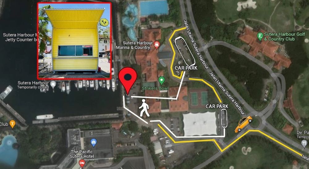 Puntos de referencia cercanos: Ruta B: Si te alojas en el Sutera Harbour Resort. Desde tu habitación, camina directamente hasta el muelle de Sutera Harbour, ¡donde encontrarás a nuestro responsable de billetes esperándote!