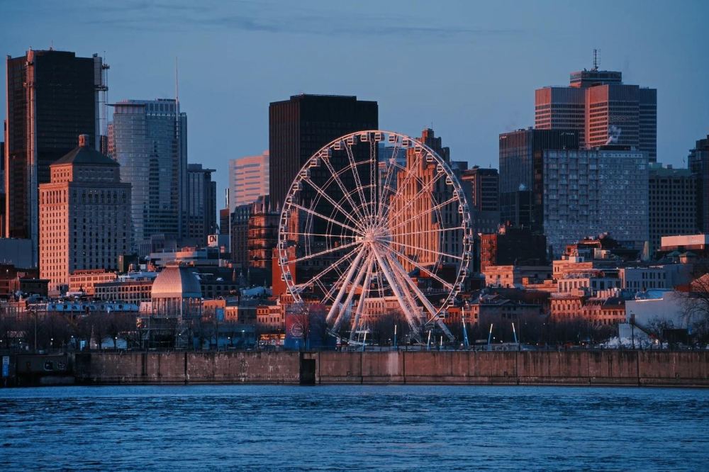 ▲ Cabina transparente de 60 metros de altura con vistas al río San Lorenzo, luces multicolor iluminan el puerto antiguo por la noche.