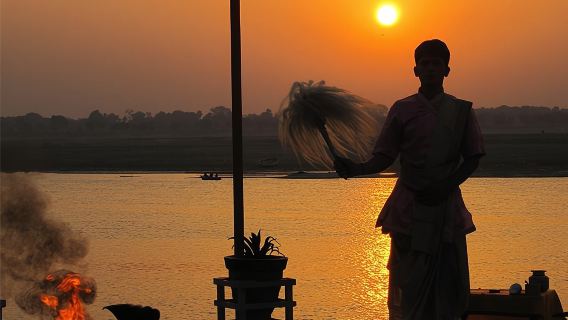 Dasaswamedh Ghat: A las 17:00 h, visita al Ganges para visitar el crematorio y, a continuación, regreso a Dashashwamedh Ghat para presenciar la ceremonia vespertina Ganga Aarti. El recorrido finaliza con el regreso al hotel sobre las 20:00 h.